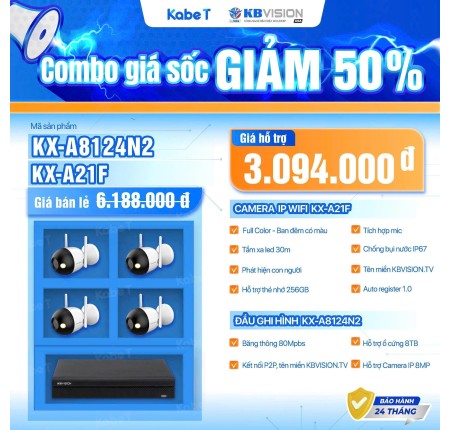 Bộ Camera Wifi Kbvision KX-A8124N2+4 KX-A21F