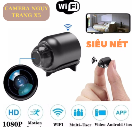 Camera siêu nhỏ X5 không dây phát hiện chuyển động nhìn đêm an ninh giám sát HD 1080P Camera giám sát Wifi cho bé, chống trộm, giám sát văn phòng nhà cửa.