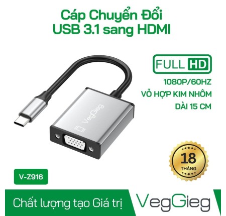 Cáp chuyển Type-c 3.1 To Vga VegGieg V-Z916