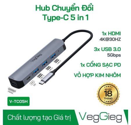 Cáp Chuyển Type C (5in1) VegGieg V-TC05H