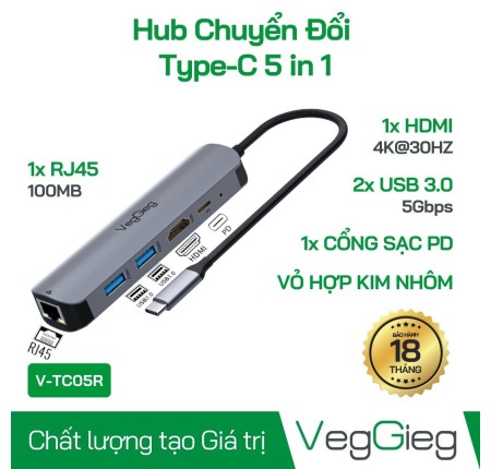 Cáp Chuyển Type C (5in1) VegGieg VTC05R (100Mbps)