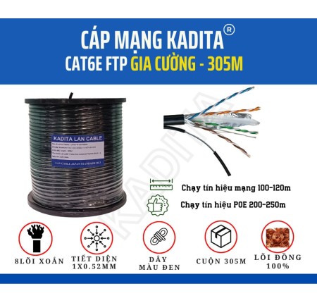 Cáp Mạng Kadita FTP Cat6e (305m) 8 Lõi+Cường Lực+Nguồn 23AWG