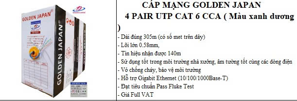 Cáp Mạng UTP Cat6 CCA Golden Japan 305m Xanh Dương