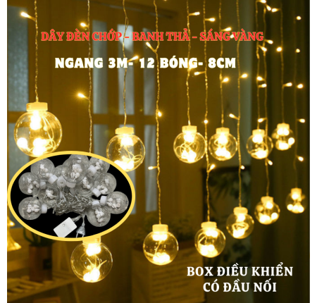 Dây Đèn Chớp Banh Thả 3m- Sáng Vàng- 12 Bóng- Có Đầu Nối