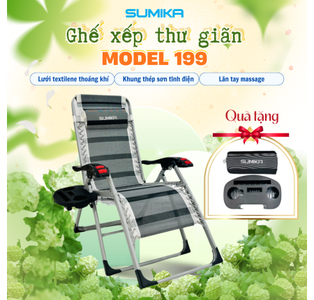 Ghế Xếp Thư Giãn SUMIKA 199 - Lăn Tay Massage, Khung Vuông Cao Cấp