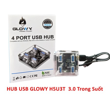 Hub Chia USB 4 Port Glowy H5U3T Trong suốt
