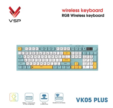 Keyboard Giả Cơ VSP VK05 Plus Trắng-Xanh-Vàng (Ko Dây, 105 keys)