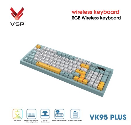 Keyboard Giả Cơ VSP VK95 Plus Trắng-Xanh-Vàng (Ko Dây, 95 keys)