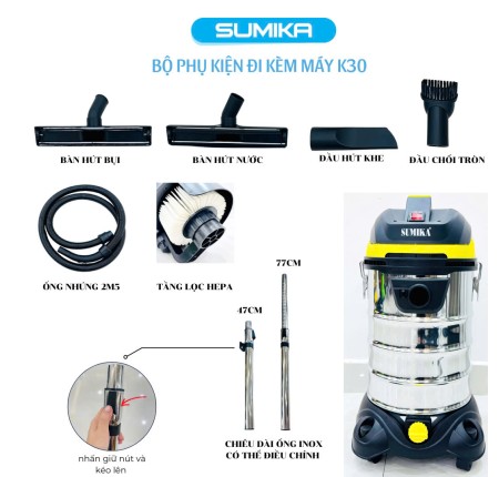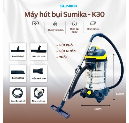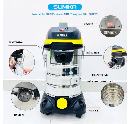 Máy Hút Bụi Sumika K30 Công Suất 1800w Thùng Chứa 30L,Lọc HEPA