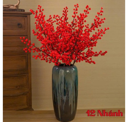 Nhánh Hoa Đào Đông Đỏ 12 Cành