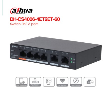 Thông số kỹ thuật Switch PoE 6 port DAHUA DH-CS4006-4ET2ET-60
