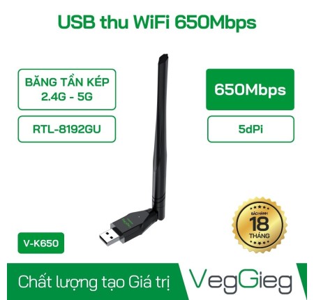 USB Thu Wifi 2.4G 650Mbps Veggieg V-K650