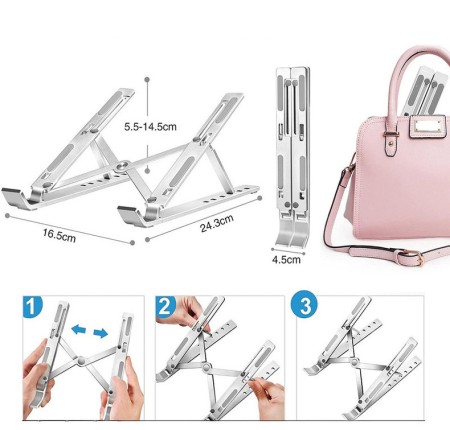 Đế nhôm X6 tản nhiệt MacBook, Laptop thiết kế cơ động có thể điều chỉnh độ nghiên và có thể gấp gọn lại bỏ vào túi đem theo đi làm.