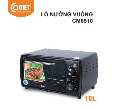 Lò nướng điện 10 lít Comet CM6510 chuyên dụng để nướng bánh. Đặc biệt là làm nóng hay làm giòn vỏ bánh mì hay bánh mì sandwich, hay dùng hâm nóng bánh pizza. Tuy kích thước nhỏ, công suất 1300 W, nhưng lò có thể dùng để hâm nóng, rã đông thức ăn, nướng lượng nhỏ thực phẩm, gà nguyên con chặt góc tư, thịt bít tết,  đều có thể cho vào vừa vặn trong lò.