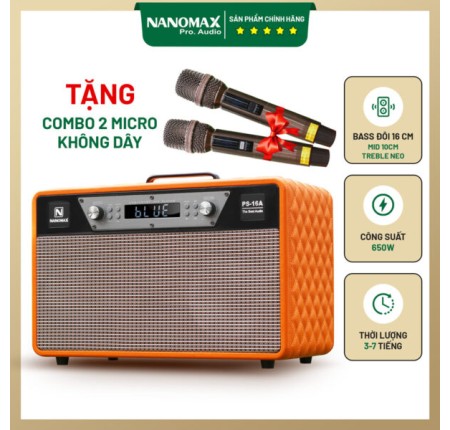 Thông số chi tiết Loa Karaoke Xách Tay Nanomax PS-16A Bass Đôi 16cm 650w