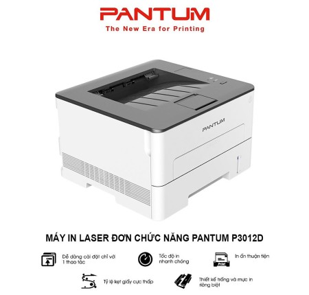 Máy in đơn chức năng Pantum P3012D là dòng máy in mới trên thị trường hiện nay được thiết kế dựa trên những công nghệ thông minh thừa hưởng từ model trước đó của hãng Pantum. Đây là giải pháp in ấn tiện lợi cho gia đình, văn phòng của bạn. Máy in có mức giá tốt nhất trong phân khúc máy in laser đen trắng đơn chức năng. Đây chắc chắn sẽ là người bạn đồng hành phù hợp với người dùng cá nhân, văn phòng nhỏ, trong các quầy bán hàng, gia đình,...