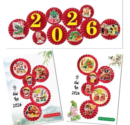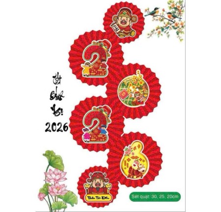 Set 6 Quạt Giấy Đỏ Decor Tết 2026